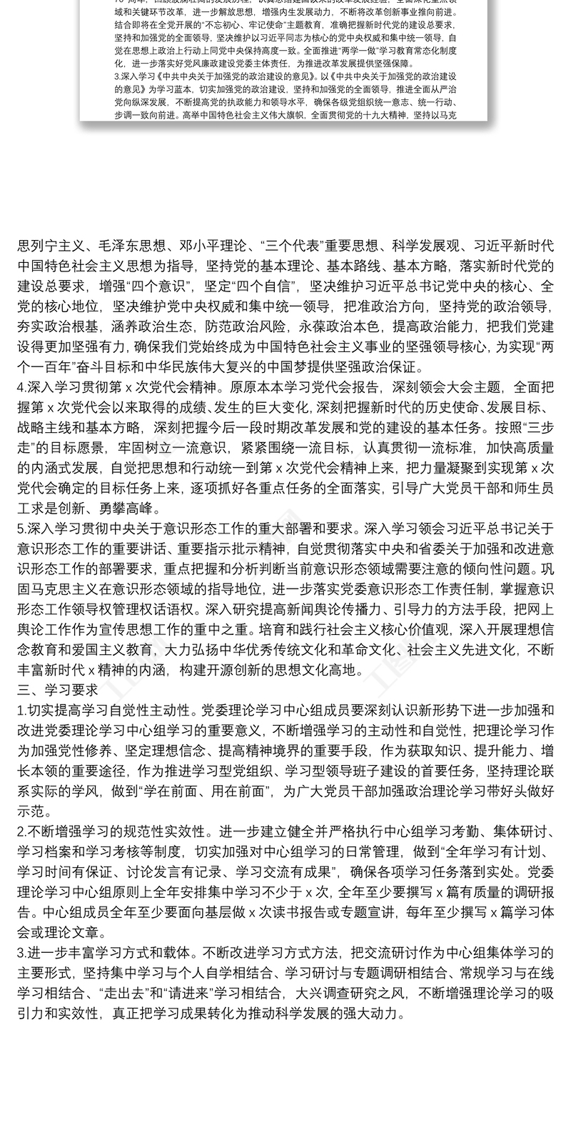20**年黨委理論學習中心組學習計劃(含計劃表)