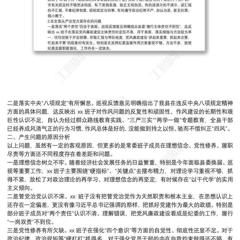 工圖網(wǎng)提供班子落實巡視整改專題民主生活會對照檢查材料供會員免費下載。更多精彩黨課PPT素材,盡在工圖網(wǎng)。