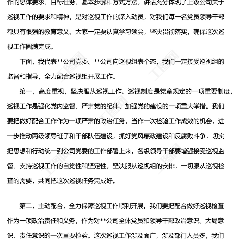 工圖網(wǎng)提供國企書記在上級巡視組巡視動員會上的講話供會員免費下載。更多精彩黨課PPT素材,盡在工圖網(wǎng)。