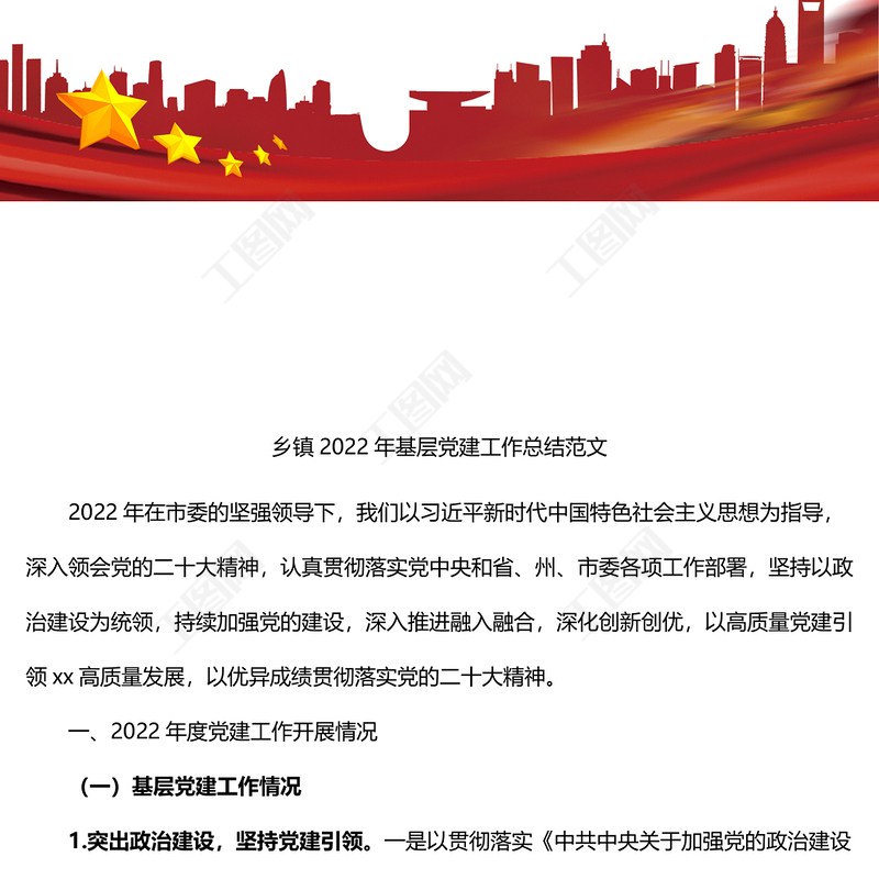 工圖網(wǎng)提供鄉(xiāng)鎮(zhèn)2022年基層黨建工作總結(jié)范文 (2)供會員免費下載。更多精彩黨課PPT素材,盡在工圖網(wǎng)。