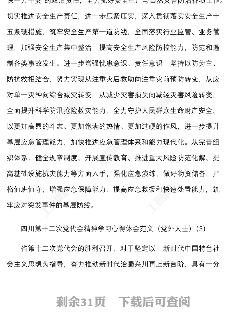 > 心得體會(huì) > 22篇心得體會(huì)學(xué)習(xí)四川省第十二次黨代會(huì)精神心得體會(huì)含應(yīng)急管理人大干部黨外人士律師等.DOCX 【圖片、文字、動(dòng)畫均可編輯】