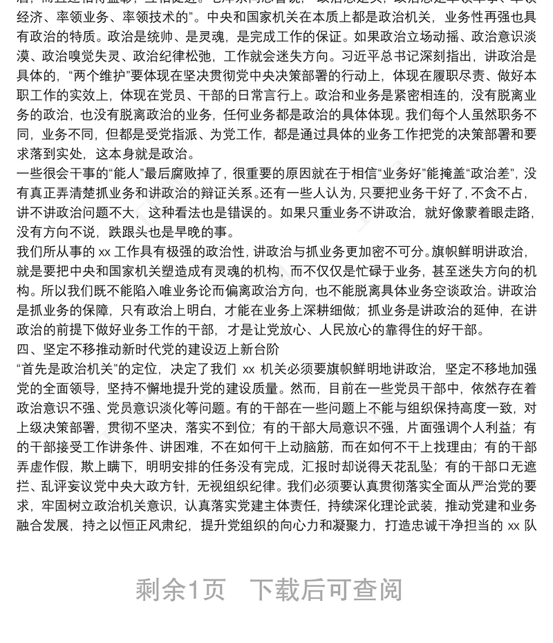 經(jīng)典黨課:牢固樹立政治機(jī)關(guān)意識(shí) 推進(jìn)黨建與業(yè)務(wù)深度融合