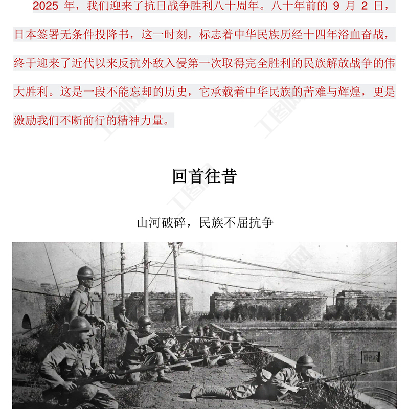 > 紀(jì)念抗日戰(zhàn)爭(zhēng)勝利80周年P(guān)PT銘記歷史吾輩自強(qiáng)主題黨課課件(講稿).DOCX 【圖片、文字、動(dòng)畫(huà)均可編輯】