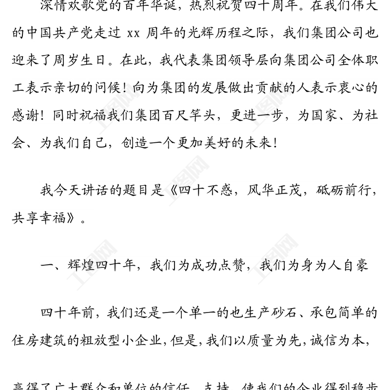 工圖網(wǎng)提供董事長在2021年集團公司周年慶祝大會上的講話發(fā)言材料供會員免費下載。更多精彩黨課PPT素材,盡在工圖網(wǎng)。