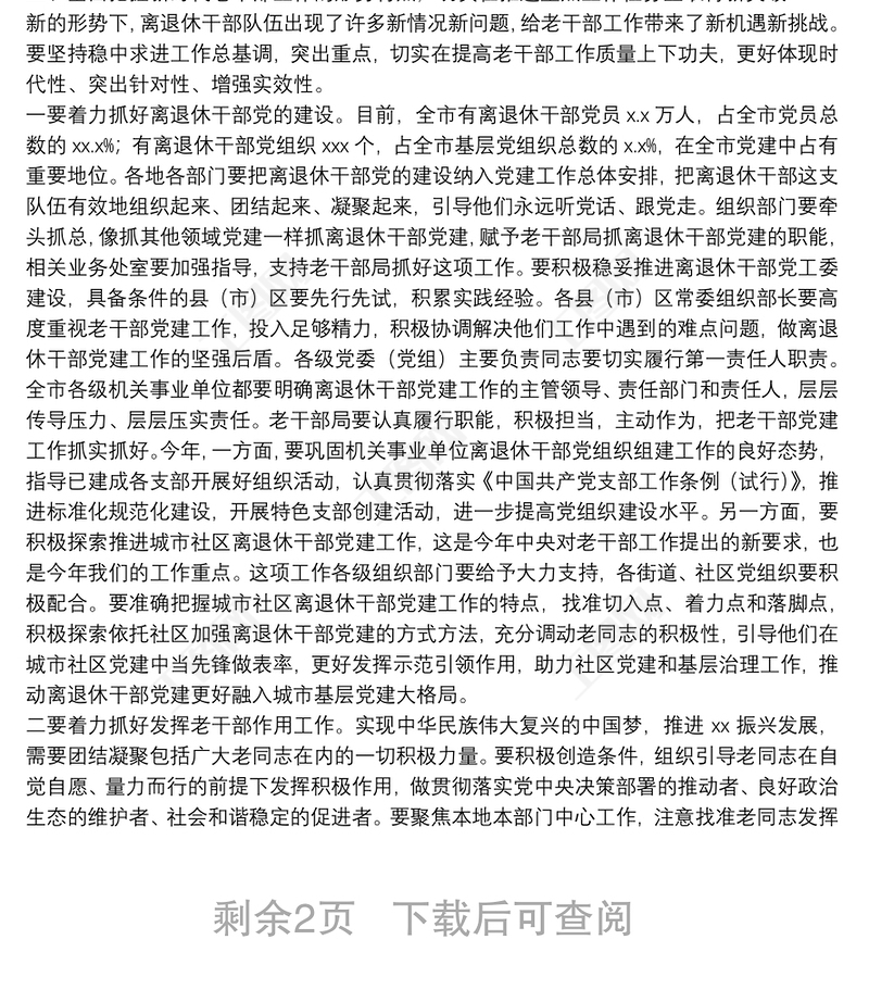 在全市老干部工作會(huì)議上的講話