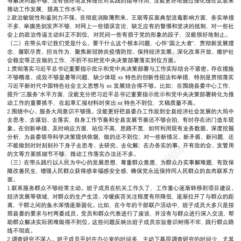 縣委辦公室班子2022年度黨史學習教育五個帶頭民主生活會對照檢查材料 Array