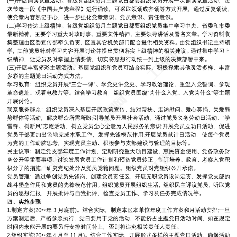 黨支部主題黨日活動實施方案 Array