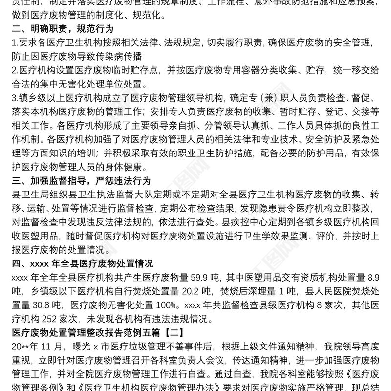 工圖網(wǎng)提供2021醫(yī)療廢物處置管理整改報(bào)告范例五篇供會(huì)員免費(fèi)下載。更多精彩黨課PPT素材,盡在工圖網(wǎng)。