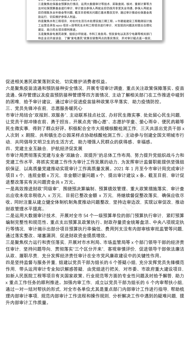 首頁 > WORD文檔 > 公文范文 > 黨建品牌創(chuàng)建工作材料:著力建設“經濟衛(wèi)士審計先鋒”黨建品牌(市審計局).DOCX 【圖片、文字、動畫均可編輯】
