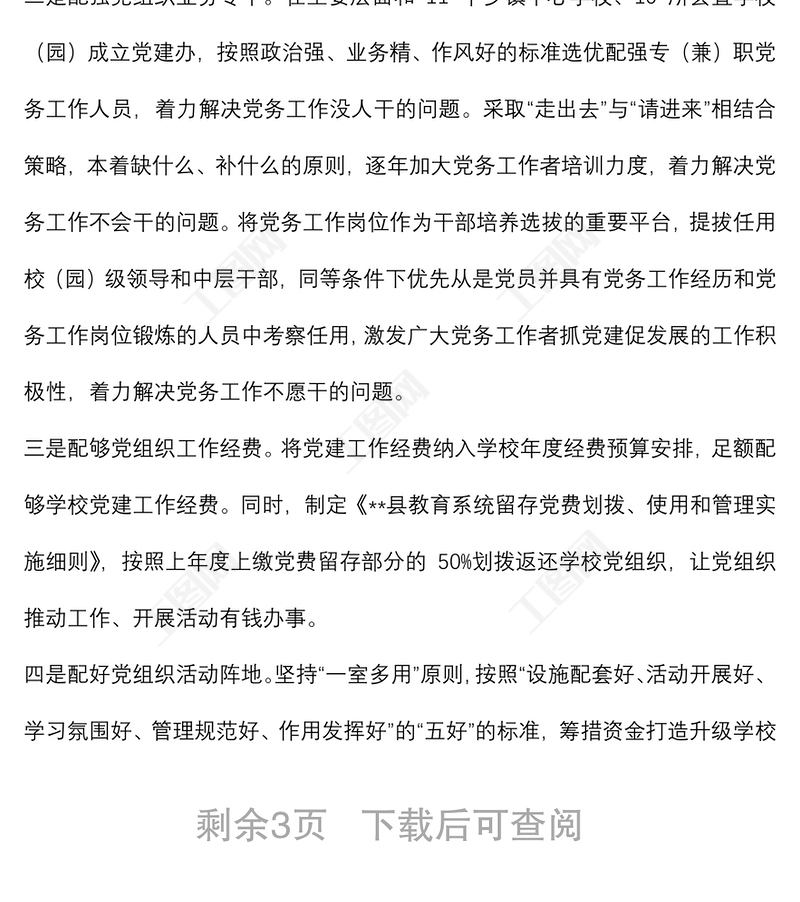 工圖網(wǎng)提供某縣教育領域黨建工作經(jīng)驗交流材料供會員免費下載。更多精彩黨課PPT素材,盡在工圖網(wǎng)。