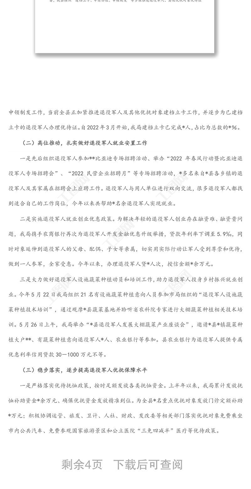 縣退役軍人事務(wù)局2022年上半年工作總結(jié)及下一步工作打算,縣退役軍人事務(wù)局2022年上半年工作總結(jié)及下一步工作打算 Array