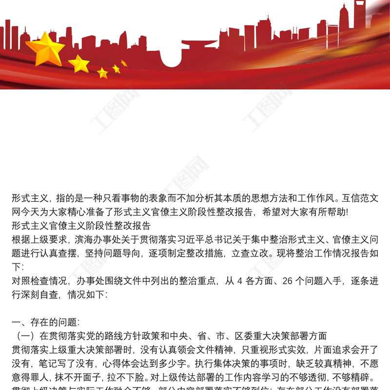 工圖網(wǎng)提供形式主義官僚主義階段性整改報告供會員免費(fèi)下載。更多精彩黨課PPT素材,盡在工圖網(wǎng)。