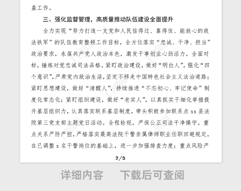 工圖網(wǎng)提供法院政法隊伍教育整頓工作總結(jié)范文工作總結(jié)匯報報告供會員免費下載。更多精彩黨課PPT素材,盡在工圖網(wǎng)。