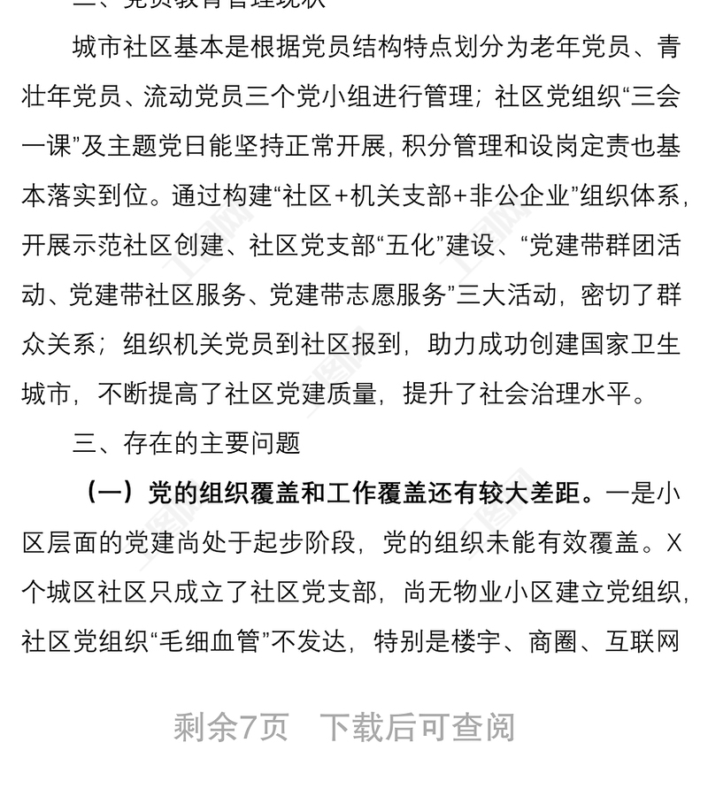 工圖網(wǎng)提供2021社區(qū)黨員分類管理試點(diǎn)調(diào)研報(bào)告供會(huì)員免費(fèi)下載。更多精彩黨課PPT素材,盡在工圖網(wǎng)。