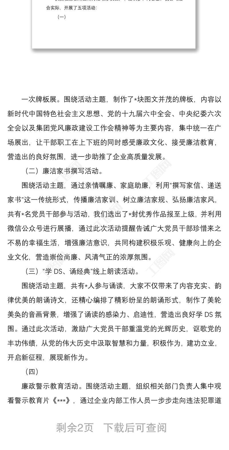 工圖網(wǎng)提供公司反腐倡廉教育宣傳月活動(dòng)工作總結(jié)文稿供會(huì)員免費(fèi)下載。更多精彩黨課PPT素材,盡在工圖網(wǎng)。