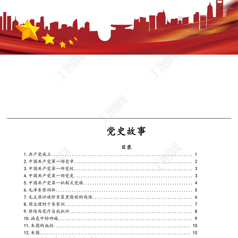 工圖網(wǎng)提供2021年公文材料:黨史故事供會員免費(fèi)下載。更多精彩黨課PPT素材,盡在工圖網(wǎng)。