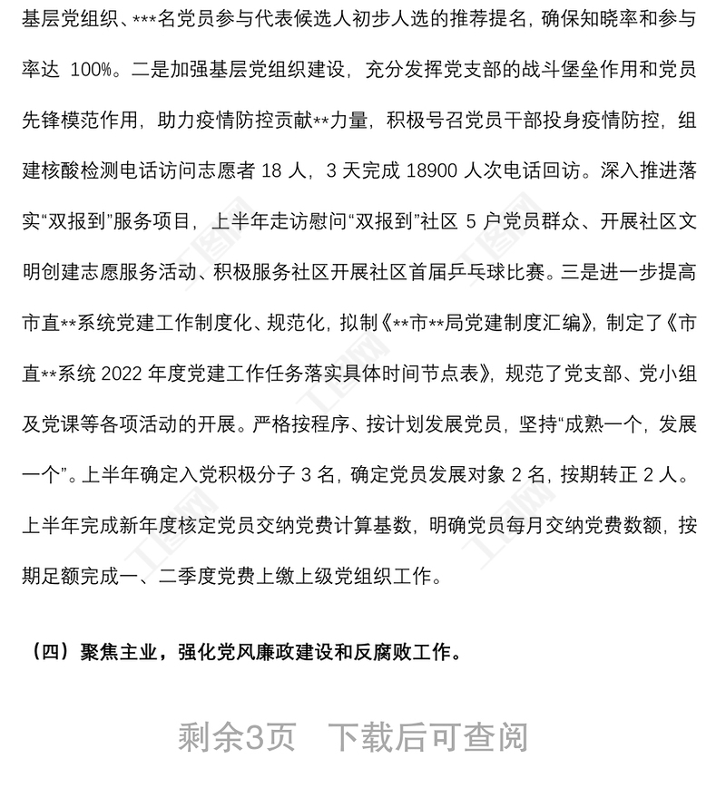 2022年全面從嚴(yán)治黨黨風(fēng)廉政建設(shè)工作總結(jié)黨支部2021年上半年關(guān)于學(xué)黨史工作總結(jié)2022年駐村工作隊(duì)員個(gè)人工作總結(jié)免費(fèi)復(fù)制2021工作專班工作總結(jié)2022年派出所黨支部黨建工作總結(jié)2021年上半年法院黨支部工作總結(jié)2022藍(lán)色扁平大氣工作總結(jié)年終總結(jié)工作匯2022年黨支部書記上半年工作總結(jié)2022年春節(jié)期間正風(fēng)肅紀(jì)工作總結(jié)2023黨建和思想政治工作總結(jié)2023大學(xué)黨建的工作總結(jié)范文2023黨建辦公室工作年度總結(jié)2023黨建及文化建設(shè)工作總結(jié)2023黨建加教育培訓(xùn)工作總結(jié)2023黨建十社會救助工作總結(jié)