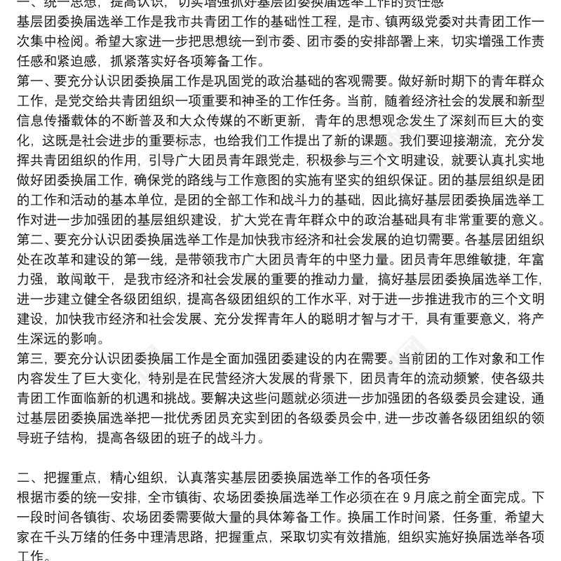 在全市基層團(tuán)委換屆工作部署會(huì)上講話三篇