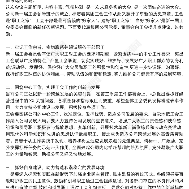 董事長在工會換屆選舉大會上的講話(集團(tuán)公司)包含