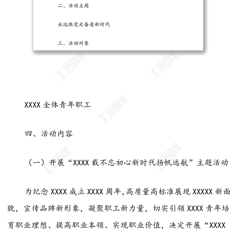 工圖網(wǎng)提供2022年“五四”青年節(jié)暨“永遠(yuǎn)跟黨走奮進(jìn)新時代”系列活動方案供會員免費(fèi)下載。更多精彩黨課PPT素材,盡在工圖網(wǎng)。