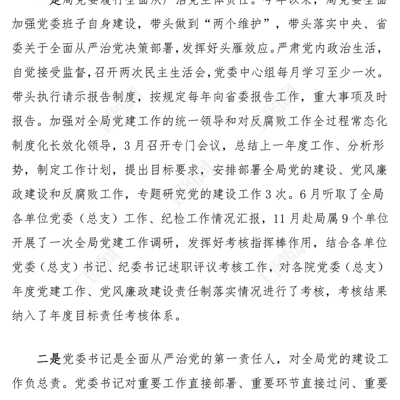 2022黨政領(lǐng)導(dǎo)班子建設(shè)規(guī)劃綱要落實(shí)情況報(bào)告2022年度全面從嚴(yán)治黨一崗雙責(zé)工作述職報(bào)告2021全面從嚴(yán)治黨一崗雙責(zé)責(zé)任落實(shí)情況報(bào)告2021醫(yī)院全面落實(shí)從嚴(yán)治黨工作報(bào)告2023年聊城兩會(huì)政府工作報(bào)告2023黨管武裝工作述職工作報(bào)告2023新時(shí)代中國特色社會(huì)主義思想落實(shí)整風(fēng)精神工作報(bào)告2023一崗雙責(zé)履職黨建工作總結(jié)2023全年落實(shí)從嚴(yán)治黨工作報(bào)告2023黨書記一崗雙責(zé)述職報(bào)告2023黨書記一崗雙責(zé)述職
