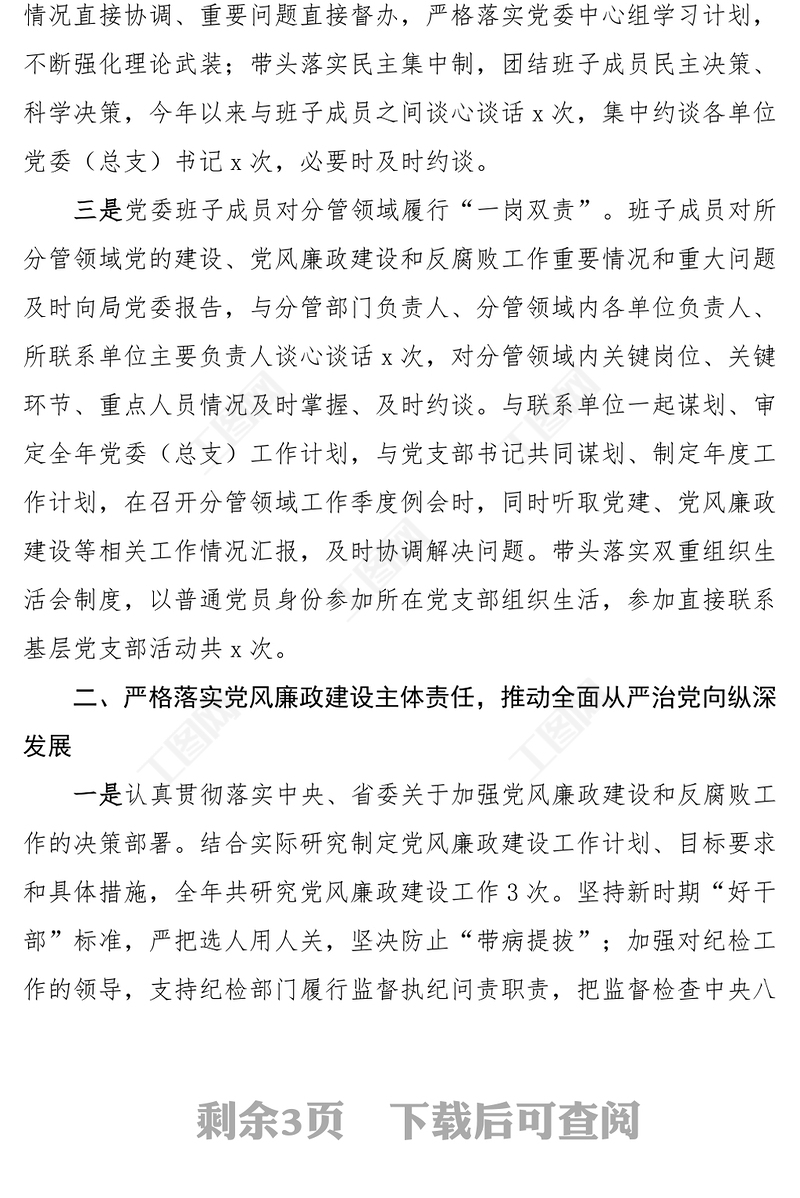 > 黨課講稿 > 領(lǐng)導(dǎo)班子2023年落實(shí)“一崗雙責(zé)”工作報(bào)告PPT模板下載(講稿).DOCX 【圖片、文字、動(dòng)畫均可編輯】