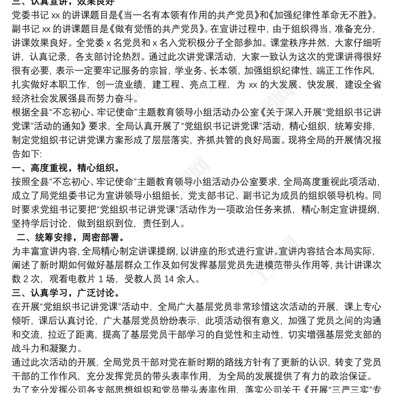 黨支部書(shū)記講黨課工作總結(jié)范本三篇 Array