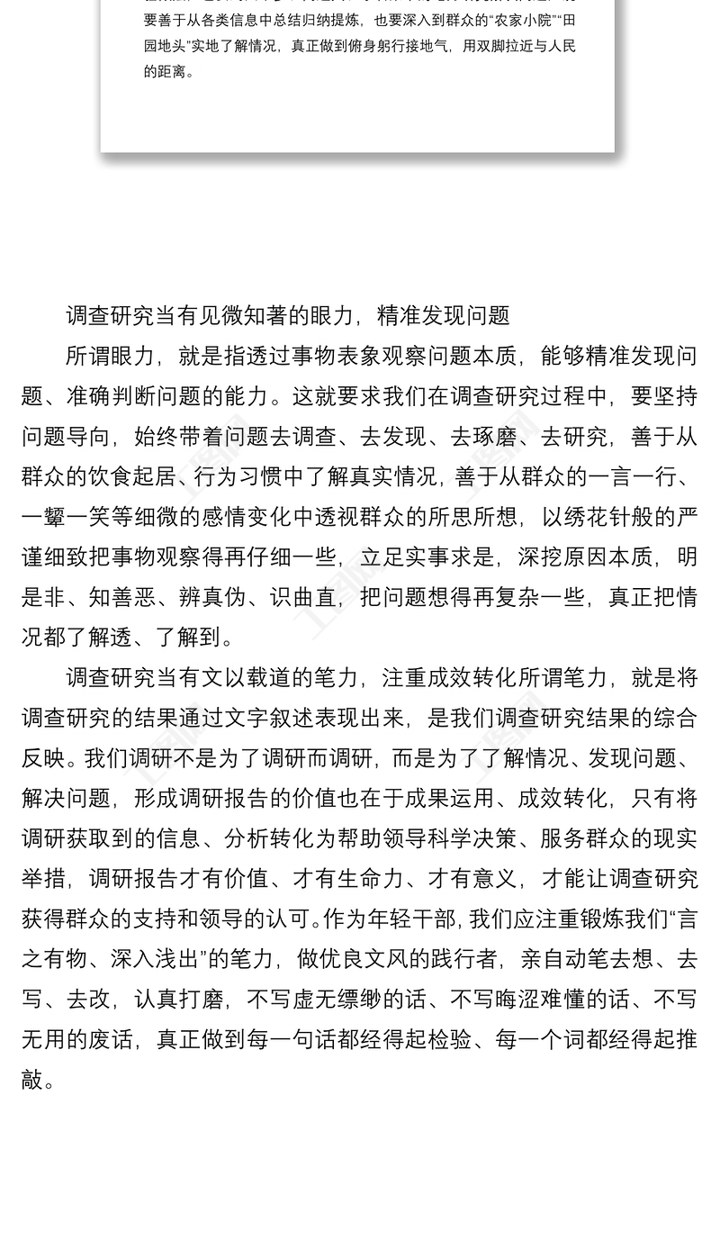 > 交流研討座談 > 學(xué)習(xí)中青年干部培訓(xùn)班開班式上講話研討發(fā)言:調(diào)查研究當(dāng)有“三力”.DOCX 【圖片、文字、動畫均可編輯】