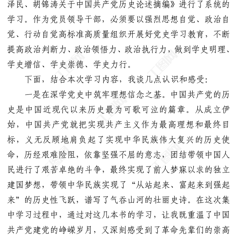 在街道黨工委理論中心組專題學習黨史會上的發(fā)言