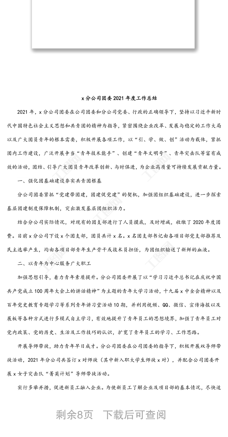 工圖網提供2021年度公司團委工作總結匯編(3篇)供會員免費下載。更多精彩黨課PPT素材,盡在工圖網。