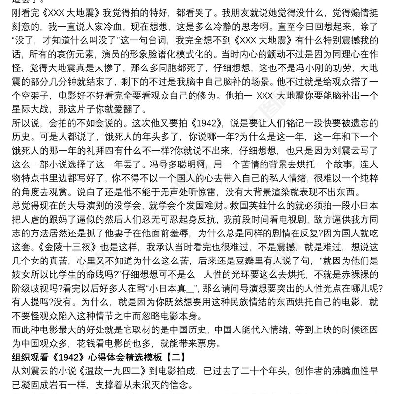 組織觀看《1942》心得體會(huì)精選模板 Array