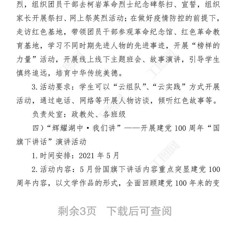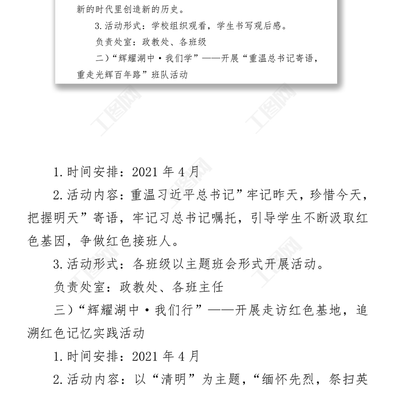 工圖網(wǎng)提供2021中學(xué)慶祝中國(guó)共產(chǎn)黨成立100周年活動(dòng)方案供會(huì)員免費(fèi)下載。更多精彩黨課PPT素材,盡在工圖網(wǎng)。