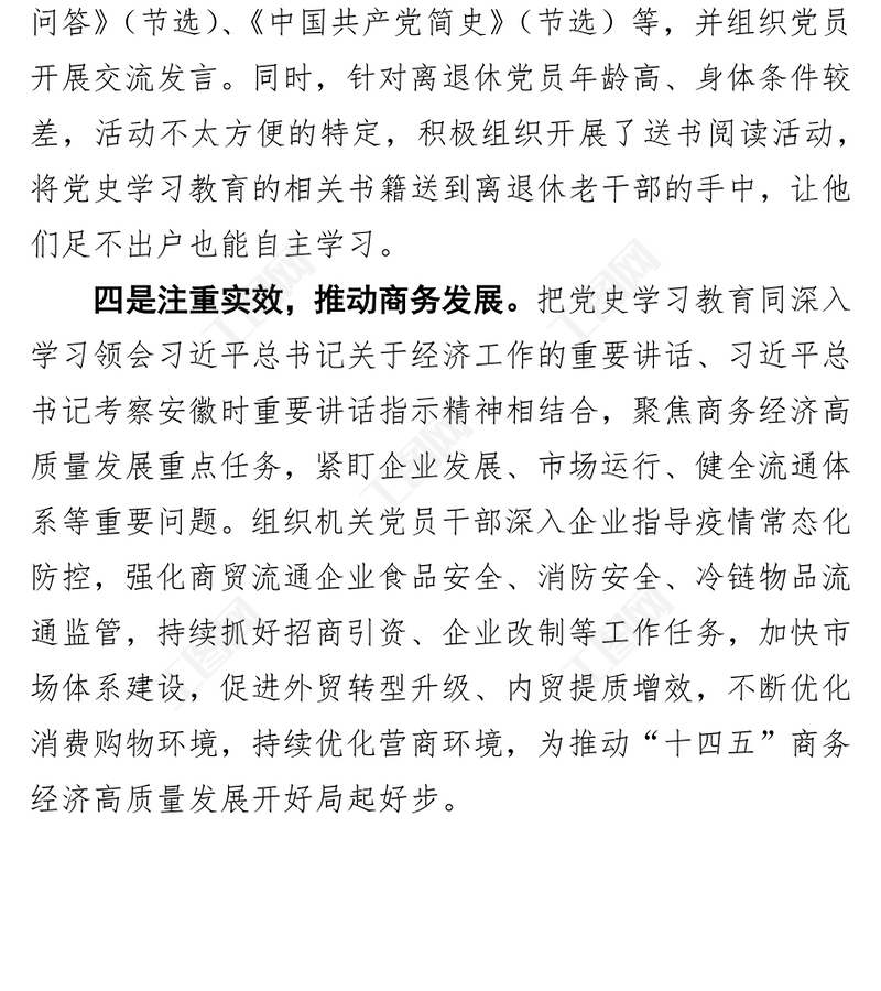 x縣商務(wù)局黨史學(xué)習(xí)教育活動(dòng)特色活動(dòng)開(kāi)展情況總結(jié)