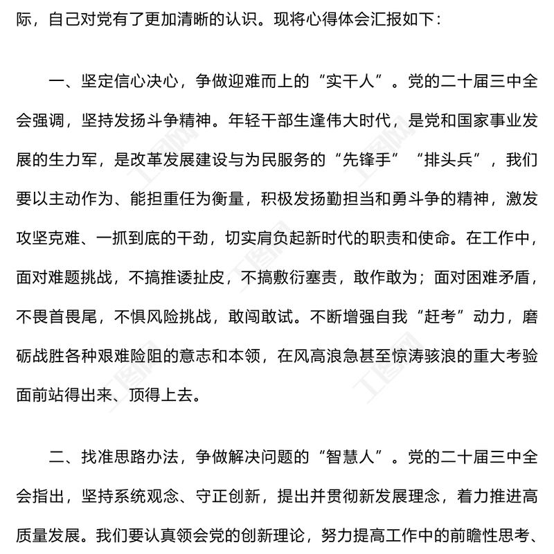 工圖網(wǎng)提供基層黨員干部學(xué)習(xí)黨的二十屆三中全會(huì)精神研討發(fā)言稿范文供會(huì)員免費(fèi)下載。更多精彩黨課PPT素材,盡在工圖網(wǎng)。