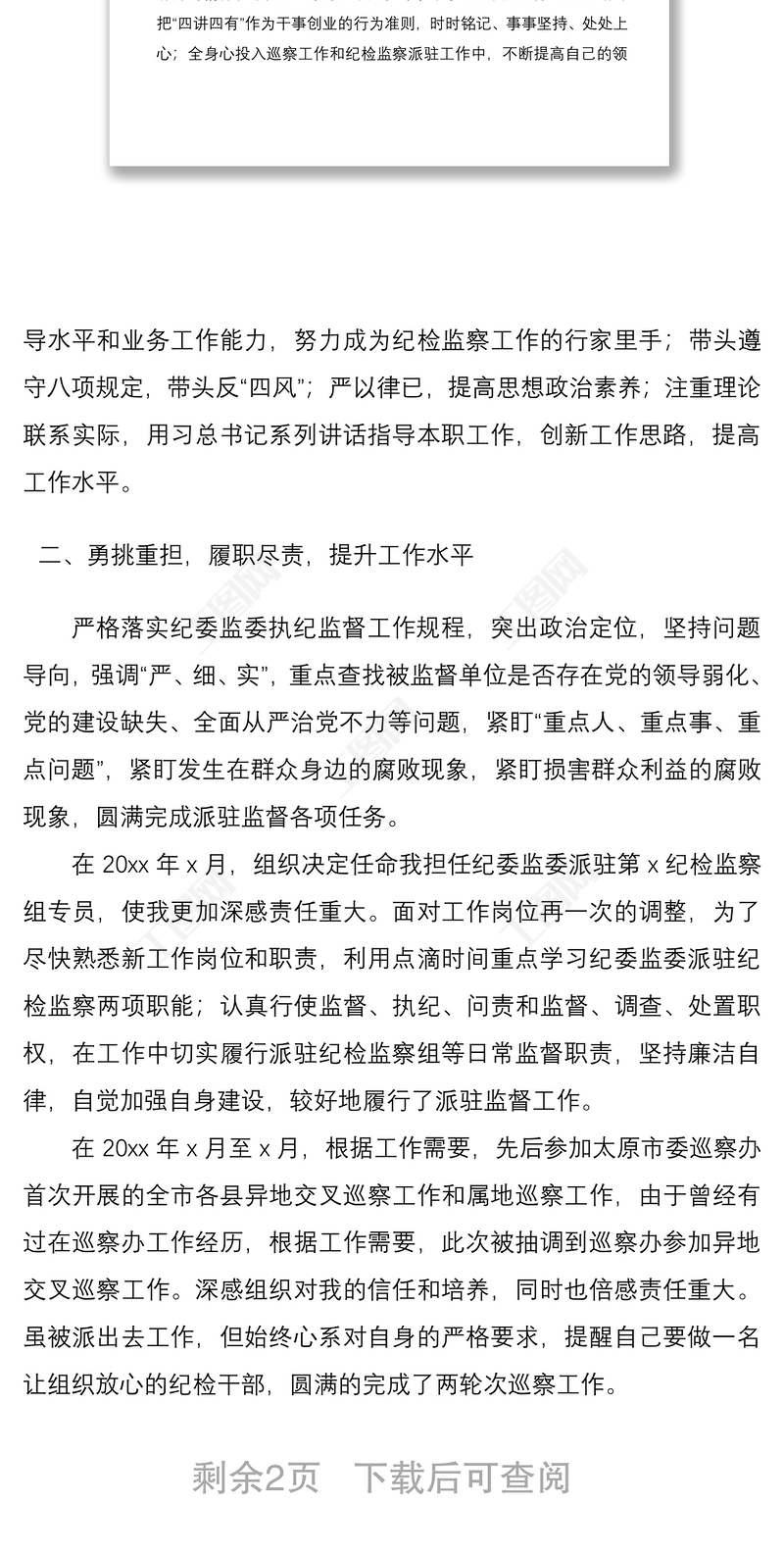 工圖網(wǎng)提供2021紀(jì)委監(jiān)委紀(jì)檢監(jiān)察組專員巡察辦工作人員個人述職報告范文供會員免費(fèi)下載。更多精彩黨課PPT素材,盡在工圖網(wǎng)。