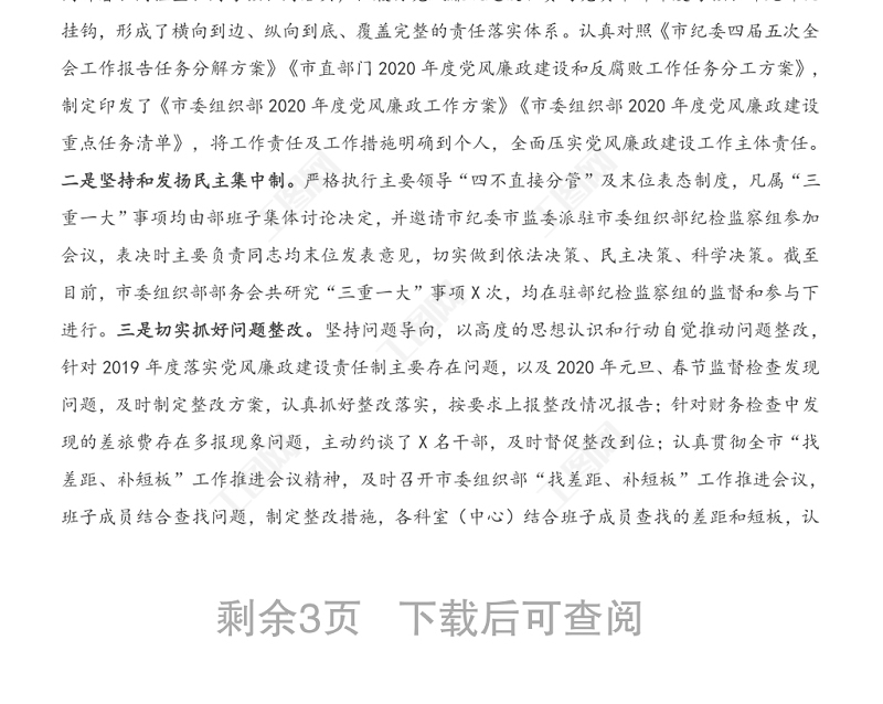 工圖網(wǎng)提供2020年市委組織部領(lǐng)導(dǎo)班子落實(shí)黨風(fēng)廉政建設(shè)責(zé)任制工作情況匯報(bào)材料 (1)供會(huì)員免費(fèi)下載。更多精彩黨課PPT素材,盡在工圖網(wǎng)。
