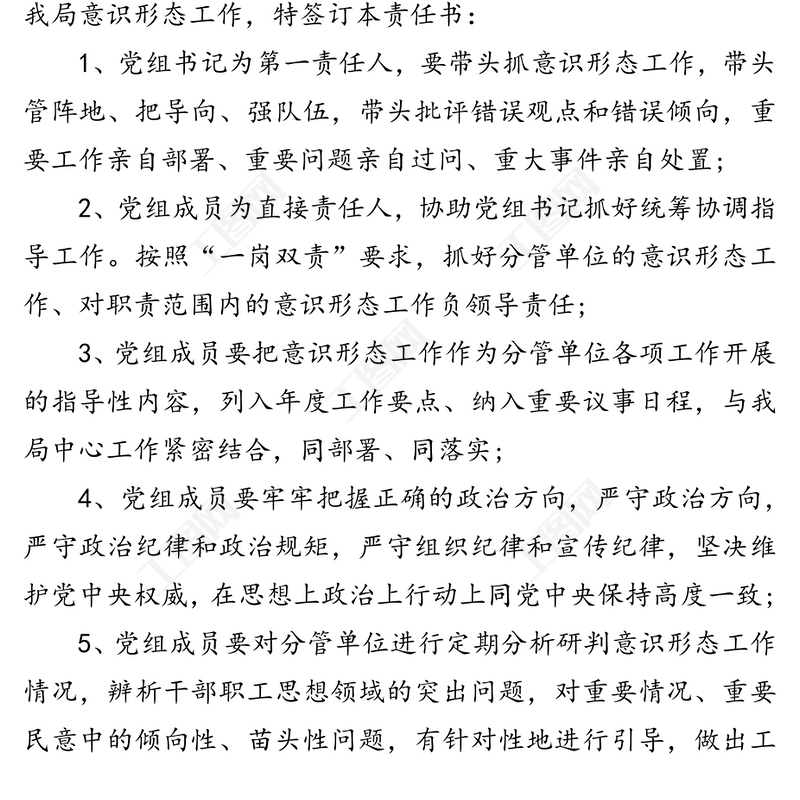 意識形態(tài)工作目標(biāo)責(zé)任書