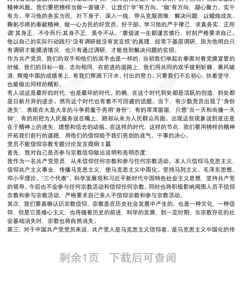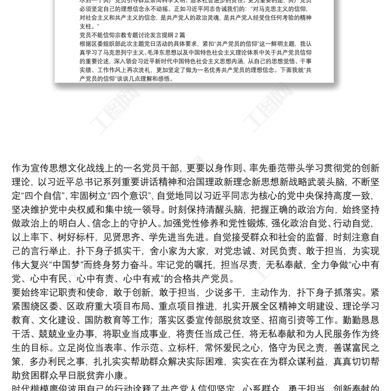 工圖網提供黨員不能信仰宗教專題討論發(fā)言提綱3篇供會員免費下載。更多精彩黨課PPT素材,盡在工圖網。