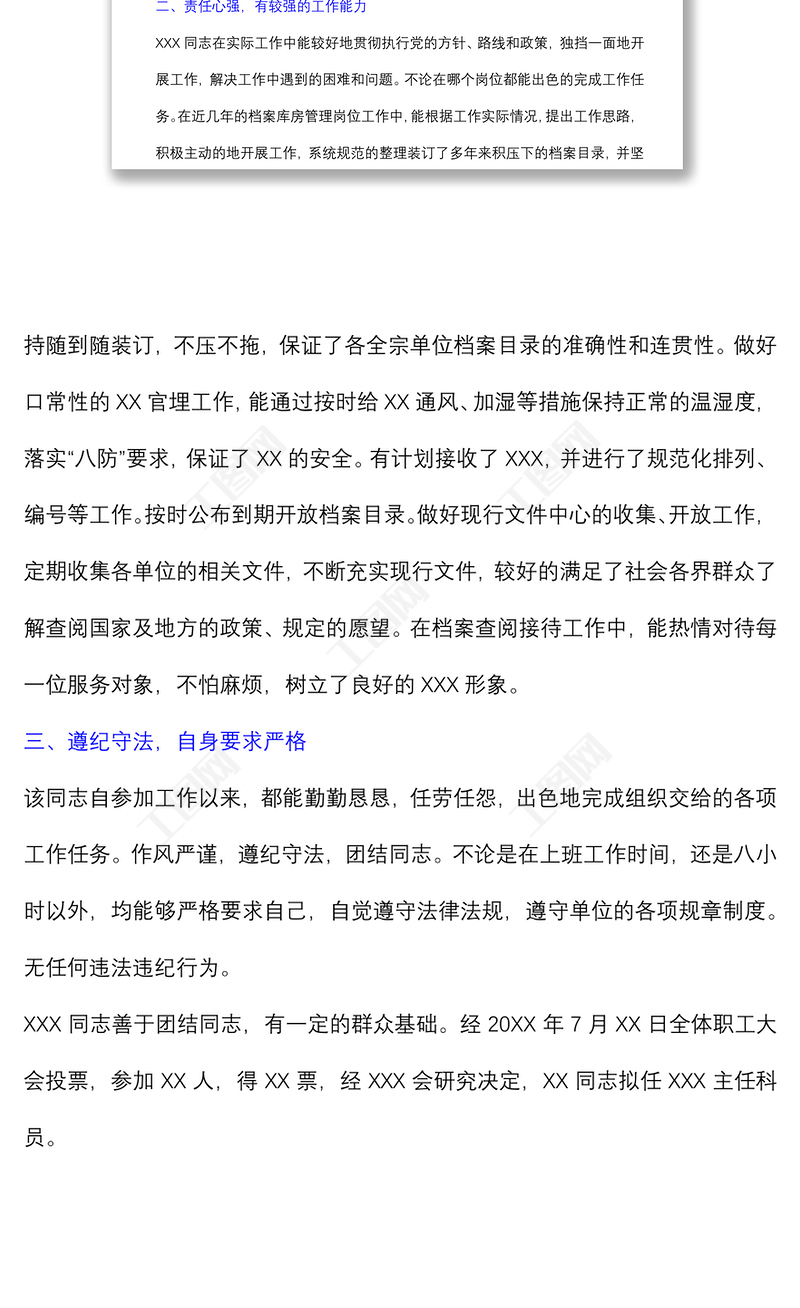 工圖網(wǎng)提供XX 優(yōu)秀公務(wù)員晉升考察材料供會(huì)員免費(fèi)下載。更多精彩黨課PPT素材,盡在工圖網(wǎng)。