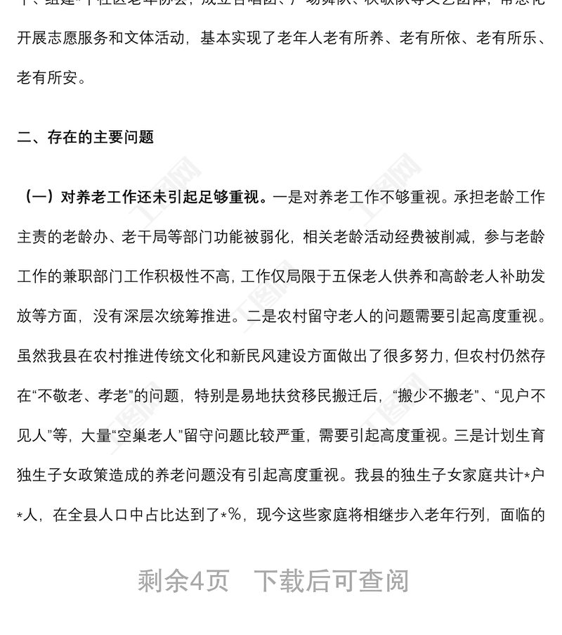 關(guān)于全縣社會養(yǎng)老工作情況的調(diào)研報告