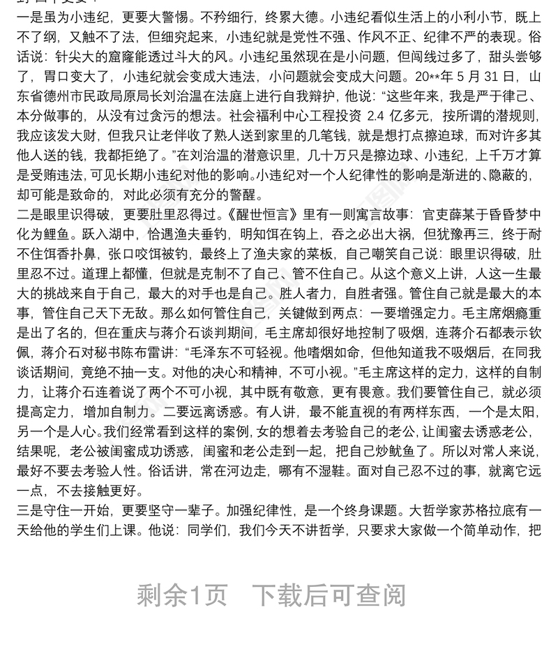 2021部隊(duì)紀(jì)律黨課教案2022黨員干部違規(guī)從事營(yíng)利性活動(dòng)開展專項(xiàng)整治心得體會(huì)2022郵政系統(tǒng)黨員干部組織生活會(huì)個(gè)人對(duì)照檢查材料2021年上半年黨員干部隊(duì)伍思想形勢(shì)分析報(bào)告2022年+黨員干部應(yīng)知應(yīng)會(huì)名詞2022黨員干部如何發(fā)揮模范帶頭作用心得體會(huì)2022能力作風(fēng)建設(shè)年黨員干部能力不足清單2021黨員干部意識(shí)形態(tài)專題培訓(xùn)2023黨員干部新時(shí)代中國(guó)特色社會(huì)主義思想黨課講稿2023黨員干部黨性修養(yǎng)剖析2023黨員干部紀(jì)律教育整頓方案2023黨員干部紀(jì)律教育整頓心得2023守紀(jì)律 黨課講稿2023黨員干部紀(jì)律教育整頓總結(jié)2023強(qiáng)黨性嚴(yán)紀(jì)律黨課講稿2023紀(jì)律黨課講稿