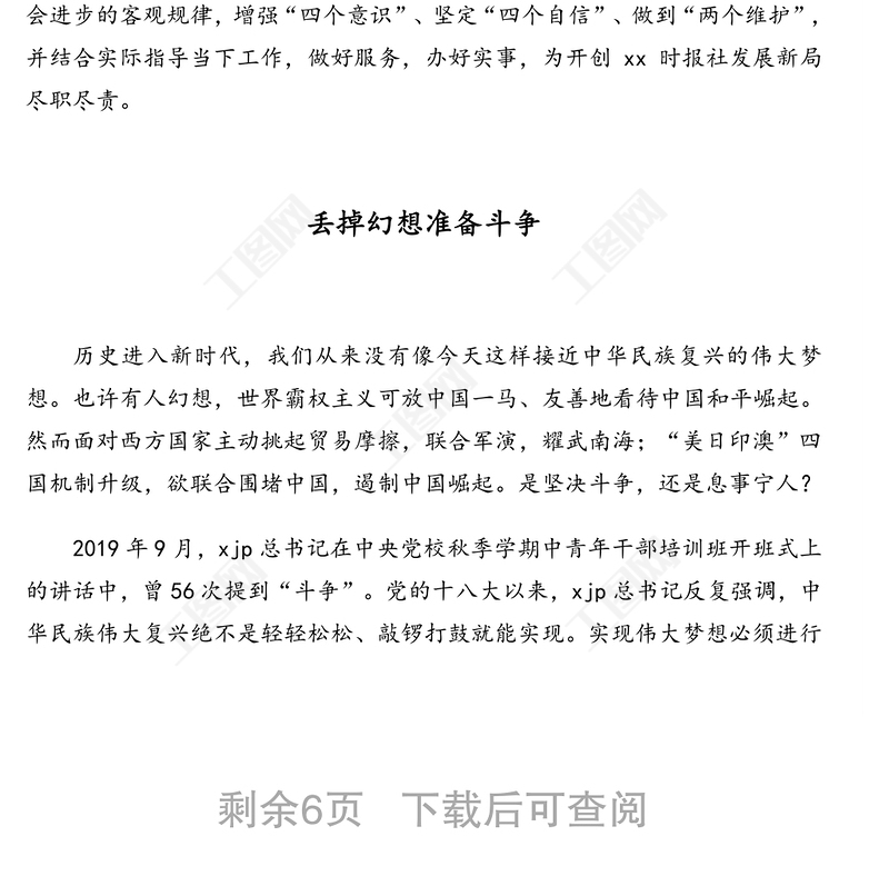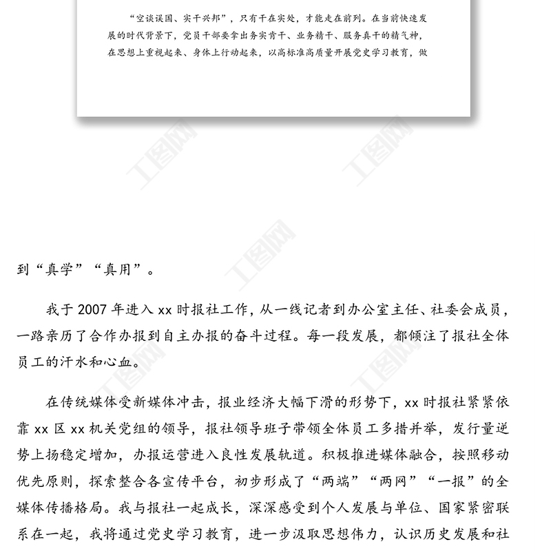 工圖網(wǎng)提供黨員干部在機(jī)關(guān)黨史學(xué)習(xí)教育讀書班大會(huì)上的交流發(fā)言材料匯編(6篇)供會(huì)員免費(fèi)下載。更多精彩黨課PPT素材,盡在工圖網(wǎng)。