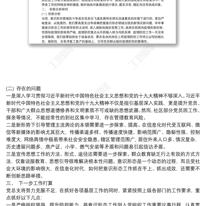 工圖網(wǎng)提供2021社區(qū)20xxxx年意識(shí)形態(tài)工作總結(jié)供會(huì)員免費(fèi)下載。更多精彩黨課PPT素材,盡在工圖網(wǎng)。