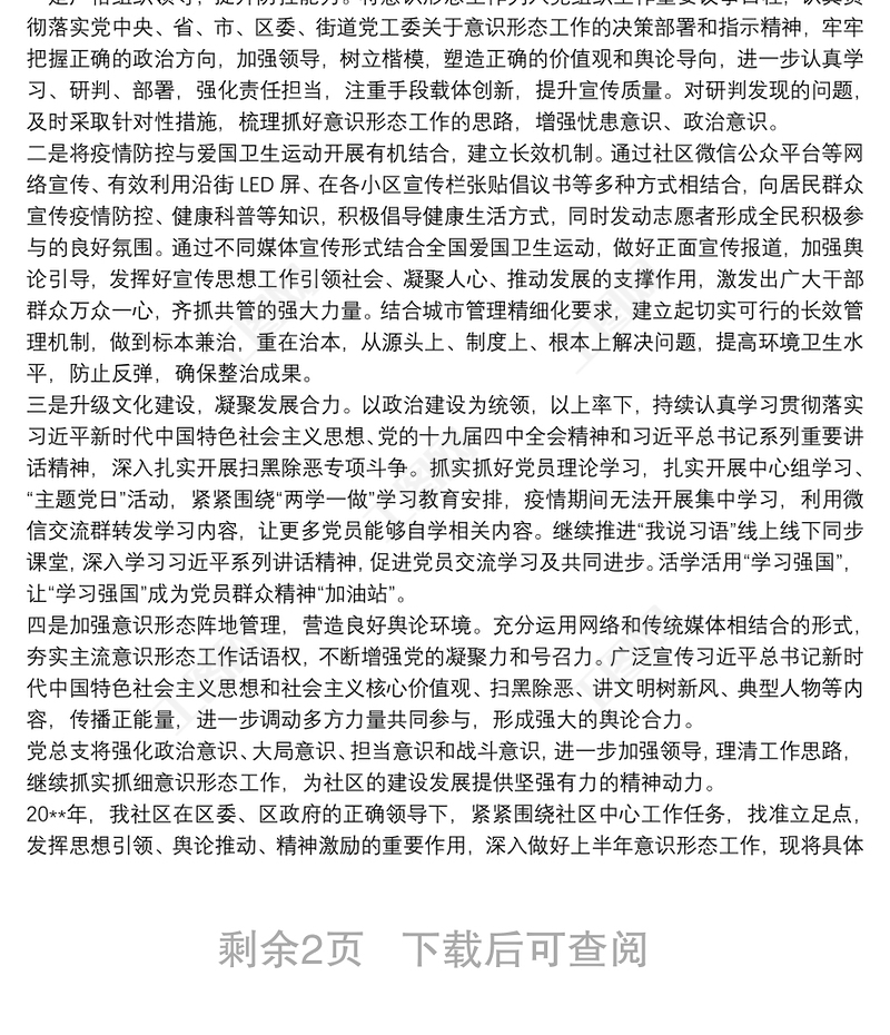 2021社區(qū)20xxxx年意識(shí)形態(tài)工作總結(jié)