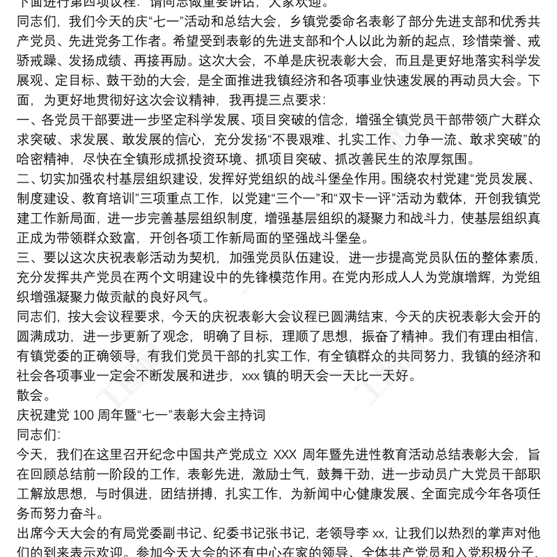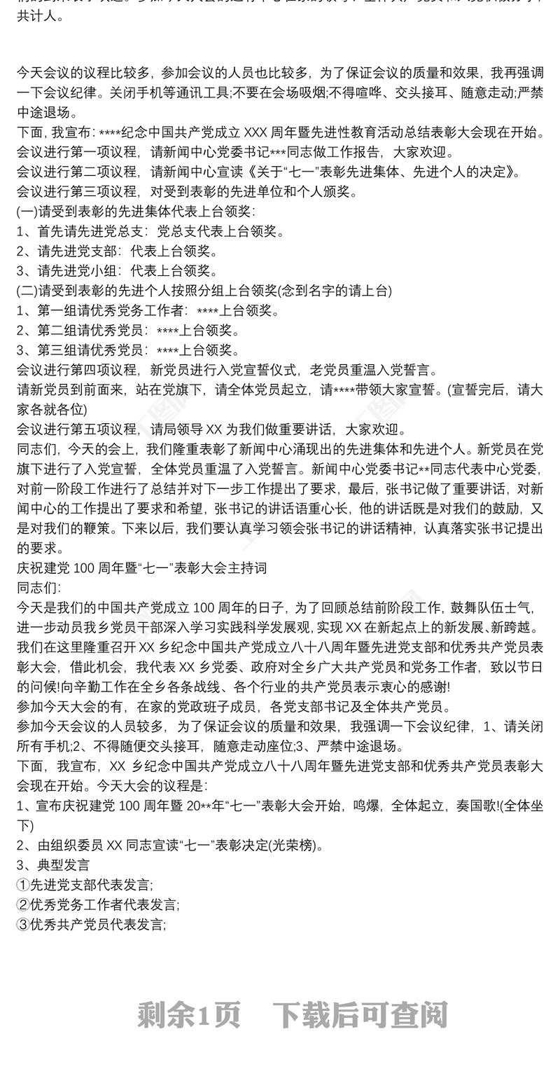 慶祝建黨100周年暨“七一”表彰大會(huì)主持詞 Array