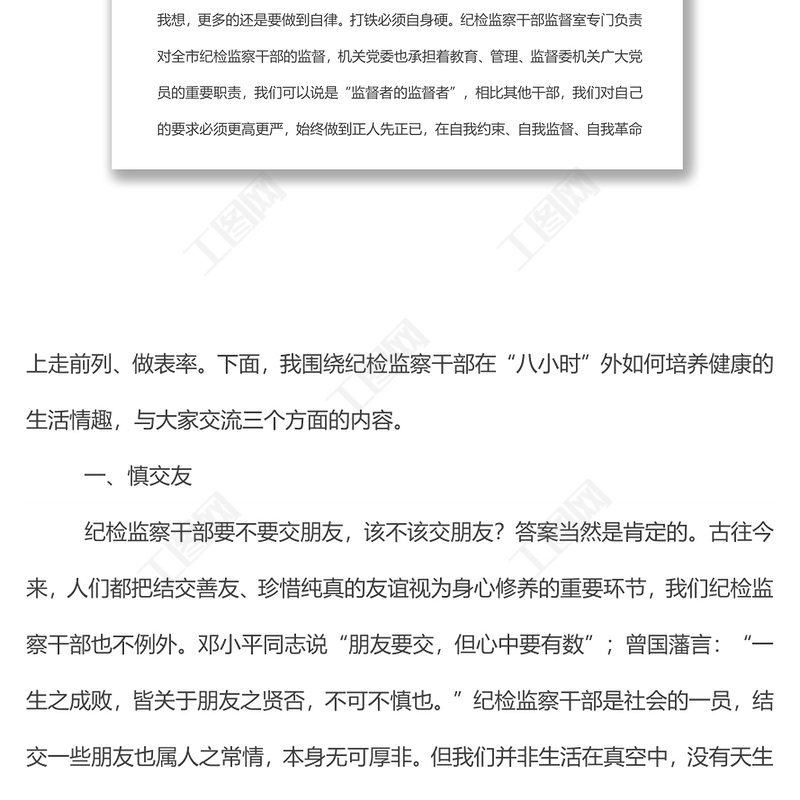 工圖網(wǎng)提供黨課:紀(jì)檢監(jiān)察干部強化“八小時”外走前列做表率供會員免費下載。更多精彩黨課PPT素材,盡在工圖網(wǎng)。