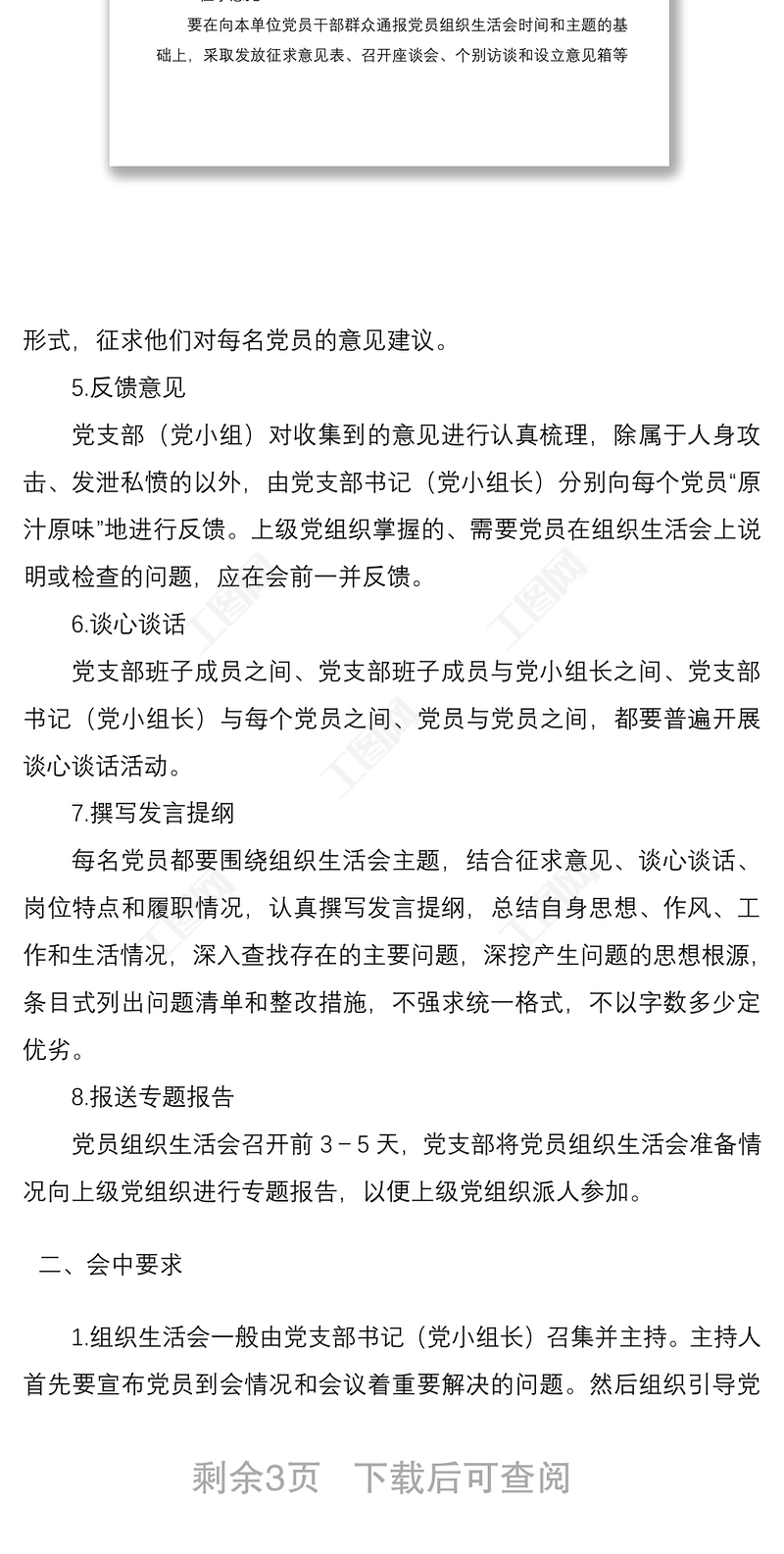 工圖網(wǎng)提供2021黨支部組織生活會(huì)程序及要求工作流程供會(huì)員免費(fèi)下載。更多精彩黨課PPT素材,盡在工圖網(wǎng)。