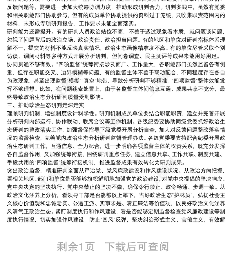 > 報(bào)告 > 市紀(jì)委監(jiān)委關(guān)于常態(tài)化開展黨內(nèi)政治生態(tài)研判的調(diào)研報(bào)告.DOCX 【圖片、文字、動(dòng)畫均可編輯】