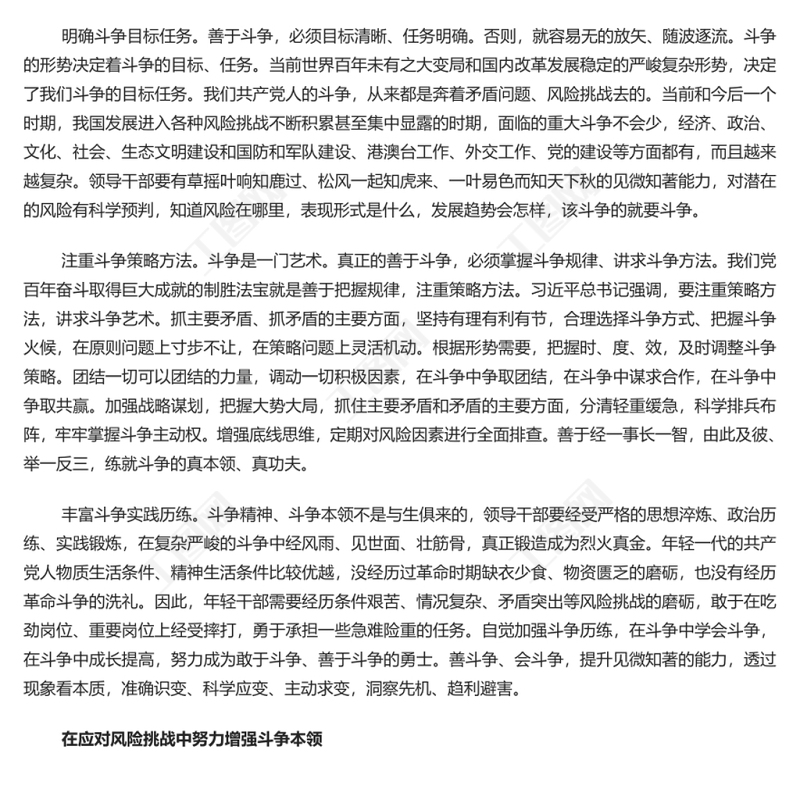 在應(yīng)對風險挑戰(zhàn)中敢于斗爭善于斗爭 黨員干部學習教育專題黨課演講稿 Array