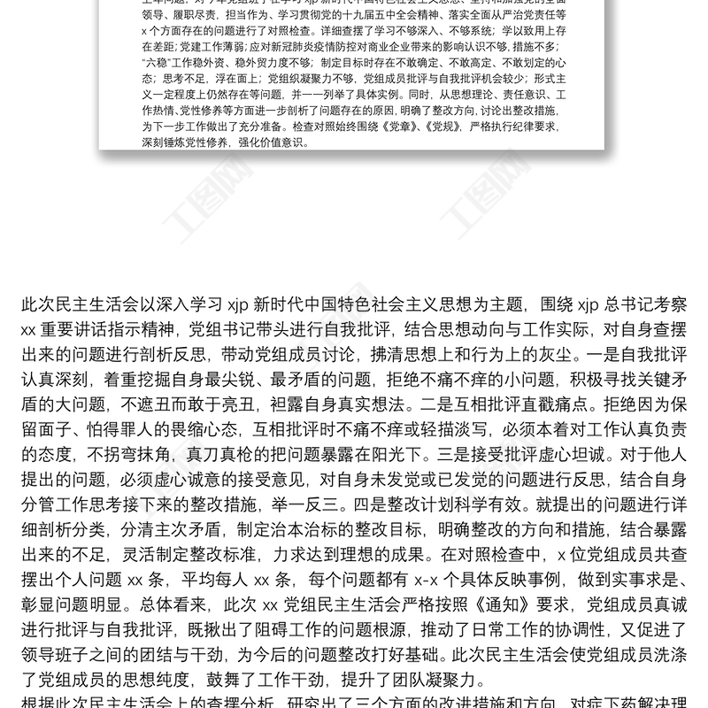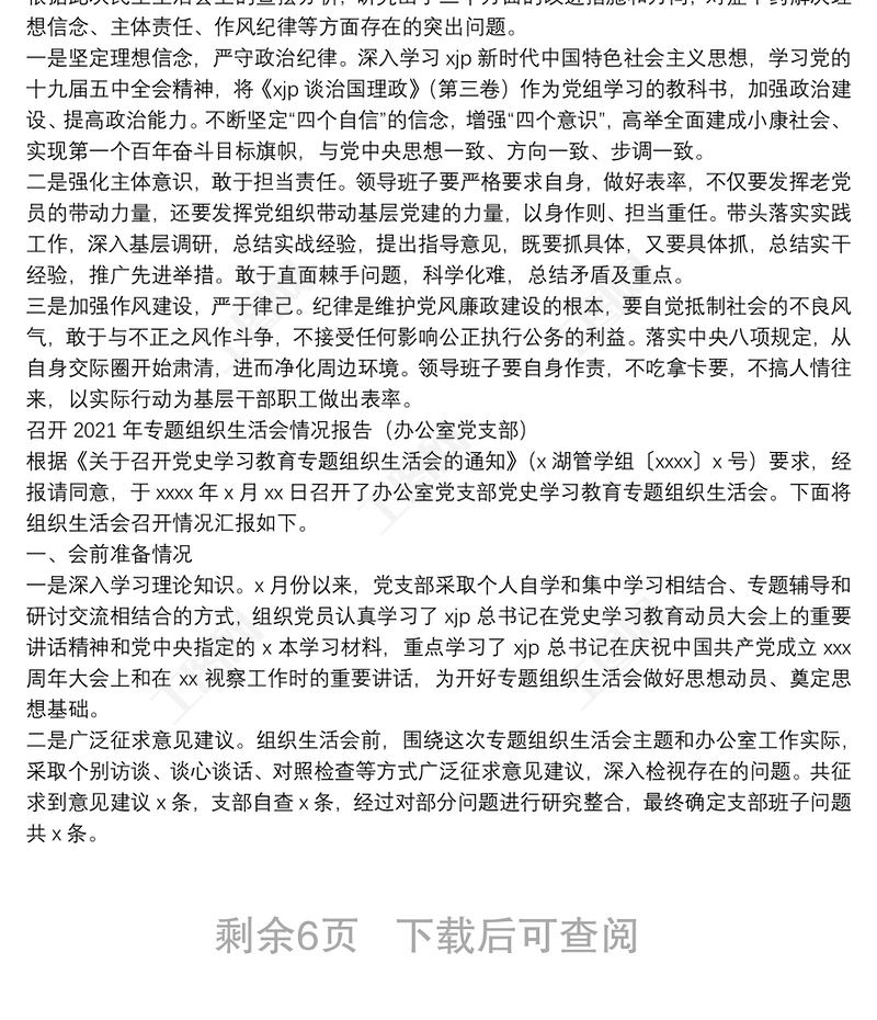 工圖網(wǎng)提供召開2021年專題組織生活會情況報告匯編(6篇)供會員免費下載。更多精彩黨課PPT素材,盡在工圖網(wǎng)。
